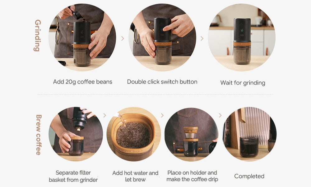 • 2 in 1 device: Electric Coffee Grinder & Filter Coffee Dripper